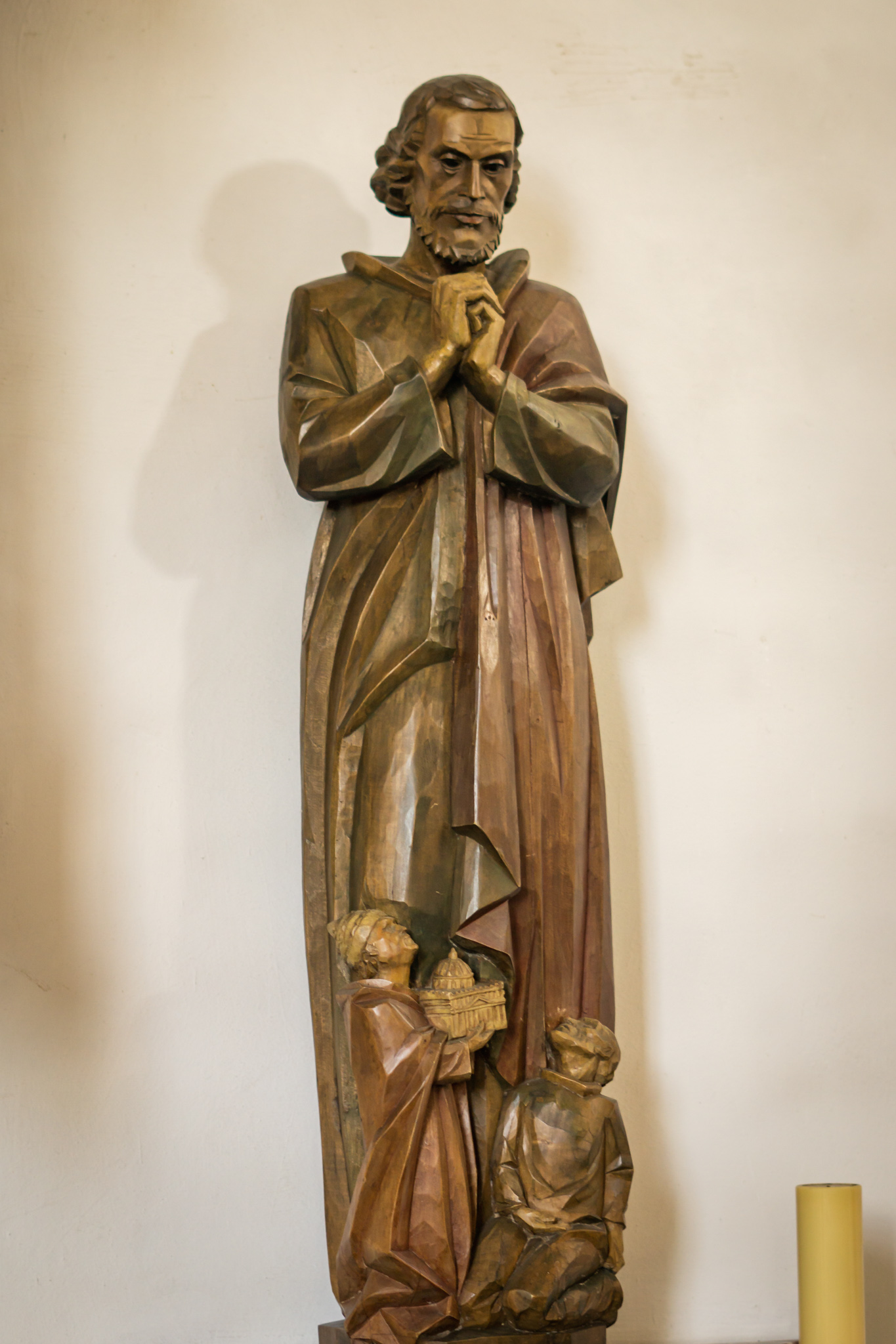 Aus Ägypten stammt Antonius der Einsiedler, der Patron der Kirche. Seine Statue blickt auf die Gläubigen von der Brüstung der Empore herab. Antonius hatte sich als junger Mann in die Wüste zurückgezogen, um in der Einsamkeit Gott zu suchen. Das machte ihn zum gefragten Ratgeber für ungezählte Menschen. Viele seiner Worte und Gedanken beeindrucken noch heute.